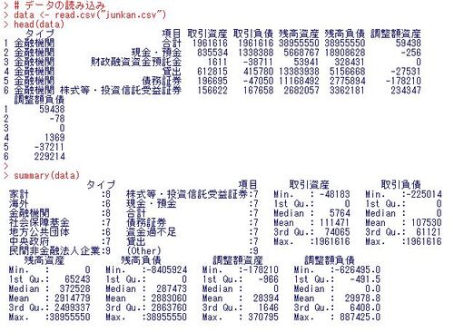www.crosshyou.info 今回は前回(上記の記事です)の続きで、資金循環勘定の分析をR言語でやってみます。 まずは、前回と同じくデータをread.csv関数でR言語に読みこみ、summary関数とhead関数でデータを表示します。 今回は資産残高ランキングを作成してみま…