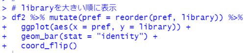 www.crosshyou.info の続きです。 今回はデータを可視化して、どの都道府県が図書館が多いのか少ないのか、データの分布形状はどうなっているのかを見てみます。 まずは、library:図書館数です。ggplot2のgeom_bar関数を使います。 mutate(pref = reorder(pr…