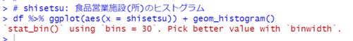 www.crosshyou.info の続きです。 今回はR言語のggplot2パッケージでグラフをいくつか描いてみます。 まず、geom_histogram関数でヒストグラムを描きます。 一部、大きな数のデータがありますね。X軸を対数目盛にしてみます。 scale_x_log10()を加えると、X…