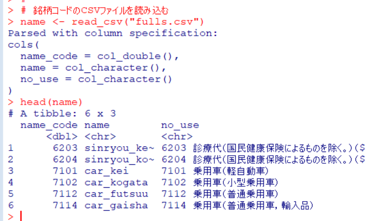 このように、name_codeに対応して、sinryou_kenpoのようにそれを表す名前を付与したCSVファイルを作成しました。