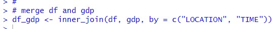 Then, I merge 'df' and 'gdp' with inner_join() function and make a new data frame.