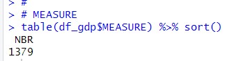 MEASURE has only one value, NBR. so I remove MEASURE from df_gdp.