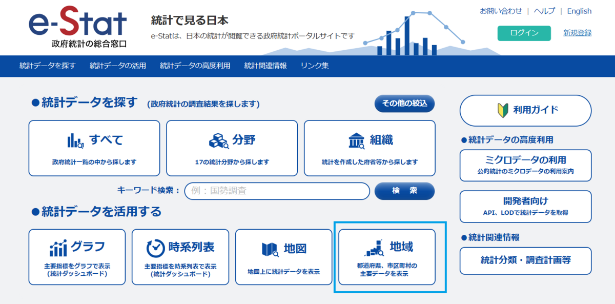 政府統計の総合窓口、e-statのウェブサイトからデータを取得します。