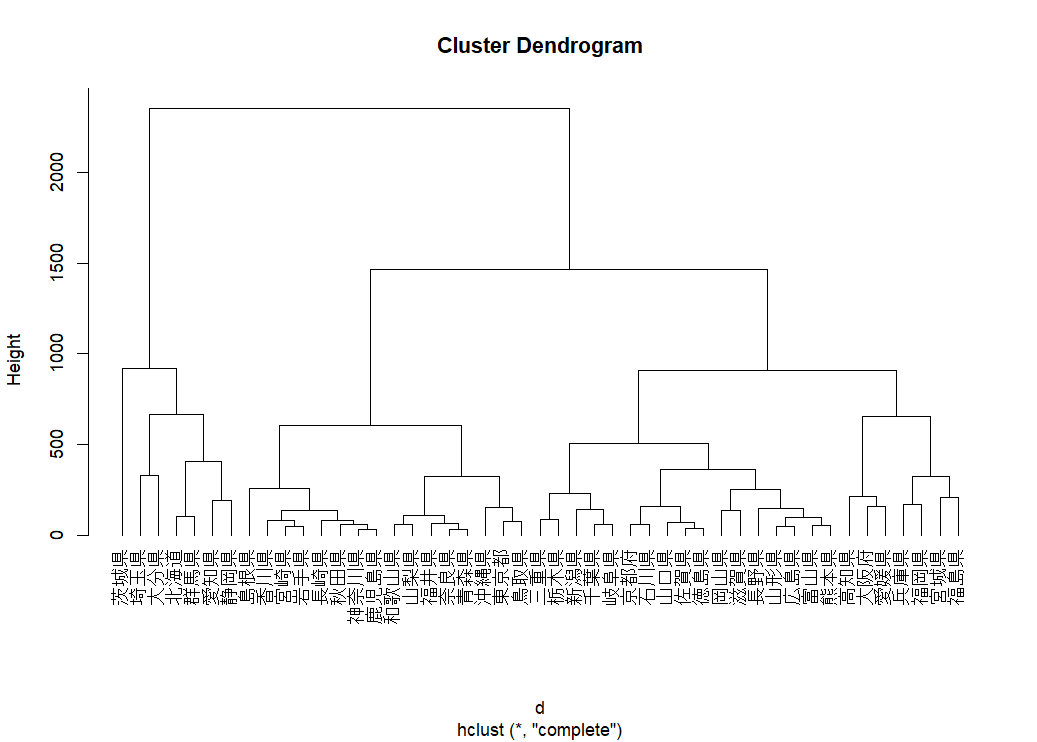 上の樹形図と見比べると、1は右側のクラスター、2は左側のクラスター、3は真ん中のクラスターですね。