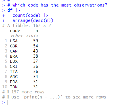 Let's see which year has the most observations. I use count() function and arrange() function and desc() function.