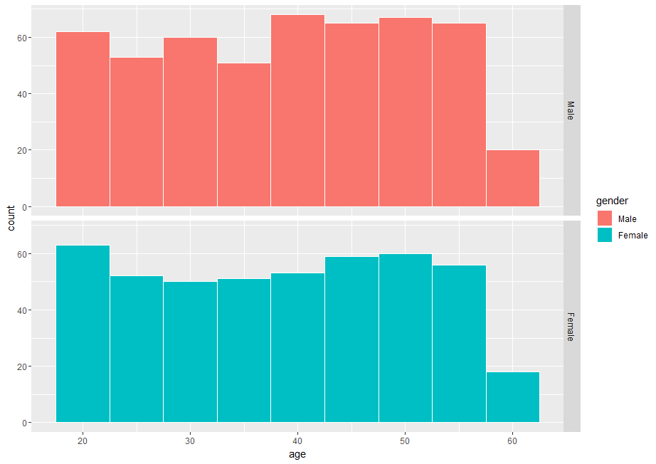 ggplot(gym_raw, aes(x = age, group = gender, fill = gender)) +