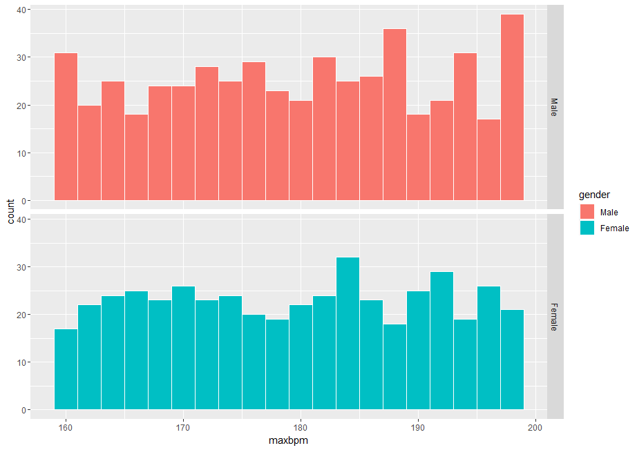 ggplot(gym_raw, aes(x = maxbpm, fill = gender)) +