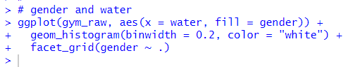 ggplot(gym_raw, aes(x = water, fill = gender)) +