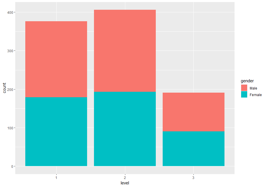ggplot(gym_raw, aes(x = level, fill = gender)) +